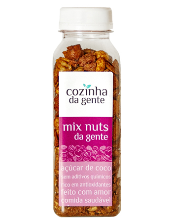 Uma mistura de amêndoas, noz pecãn e castanhas temperadas com especiarias que ajudam a aumentar seu metabolismo. É adoçada com açúcar de coco, mais natural e tem baixo índice glicêmico. A canela e a pimenta caiena tem ação anti-inflamatoria, excelente na prevenção de diversas doenças.